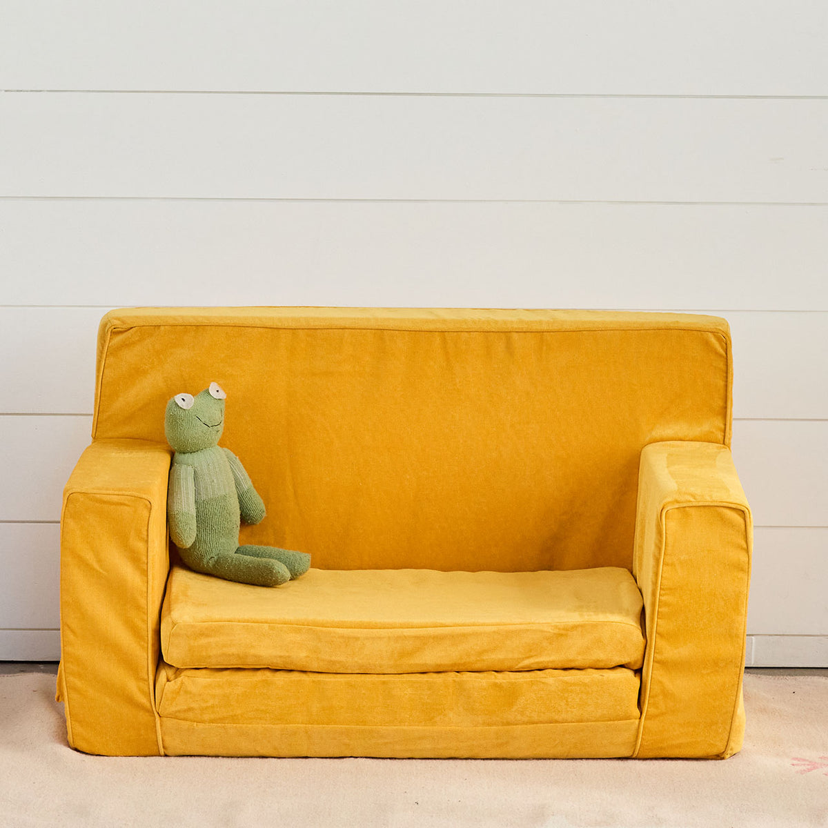 Plush and contouring, our Eco Kids Play Chair provides a cozy, stable foundation for kids and toddlers and essential spine support for longer periods of sitting. Use it as a chair for reading, playing, and watching movies. Or, fold out the seat into a lounger bed for resting and napping. The convertible seat can also be used as a play mat for endless fun.