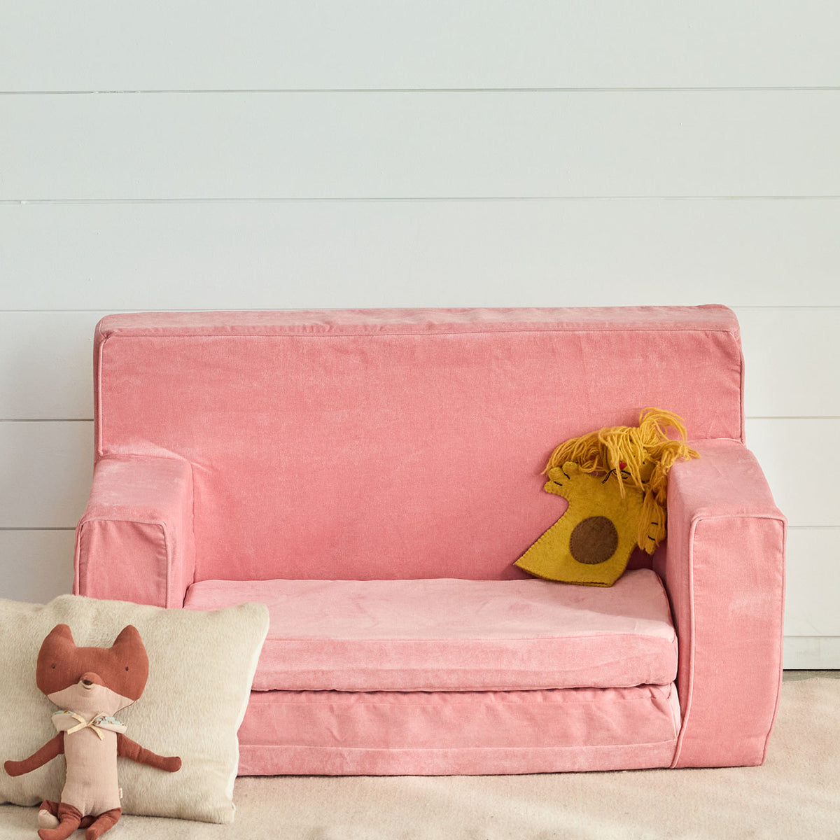 Plush and contouring, our Eco Kids Play Chair provides a cozy, stable foundation for kids and toddlers and essential spine support for longer periods of sitting. Use it as a chair for reading, playing, and watching movies. Or, fold out the seat into a lounger bed for resting and napping. The convertible seat can also be used as a play mat for endless fun.